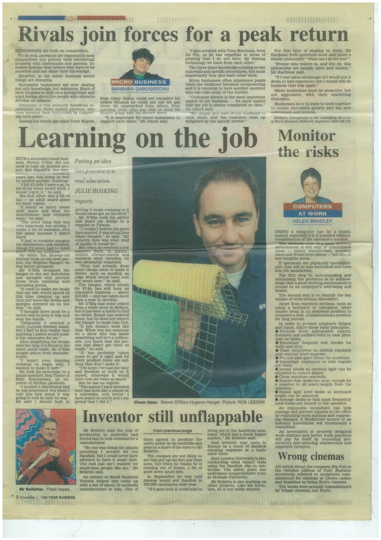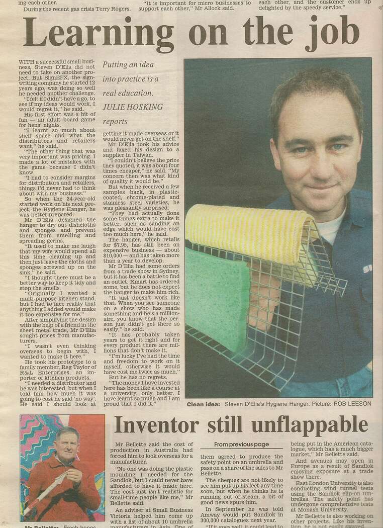The media loves a self-made Aussie working class man, particularly one with cheeky charisma, and Steven accumulated a swag of newspaper and magazine articles. Not all were about his sign business; his kitchen invention attracted the most attention. He also had a weekly comic strip in the Kilmore newspaper when he was a teenager.